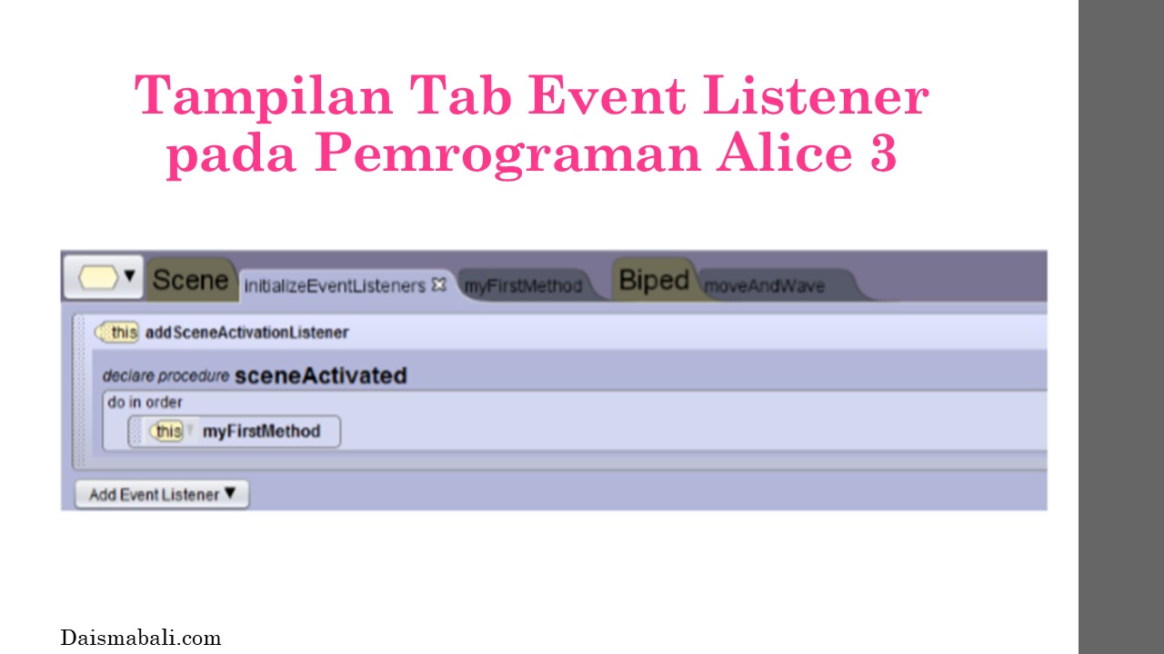 - Tampilan Tab Event Listener pada Pemrograman Alice 3