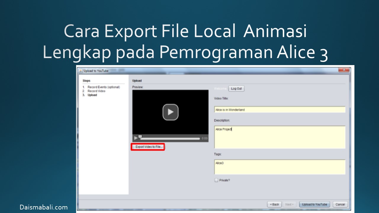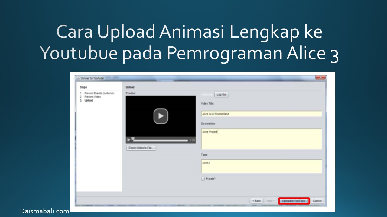 - Cara Upload Animasi Lengkap ke Youtubue pada Pemrograman Alice 3