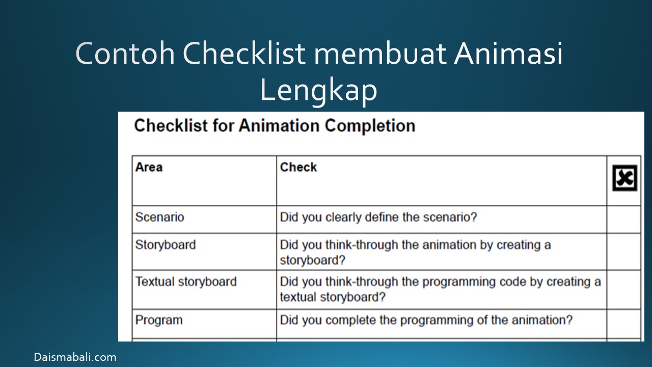 - Contoh Checklist membuat Animasi Lengkap
