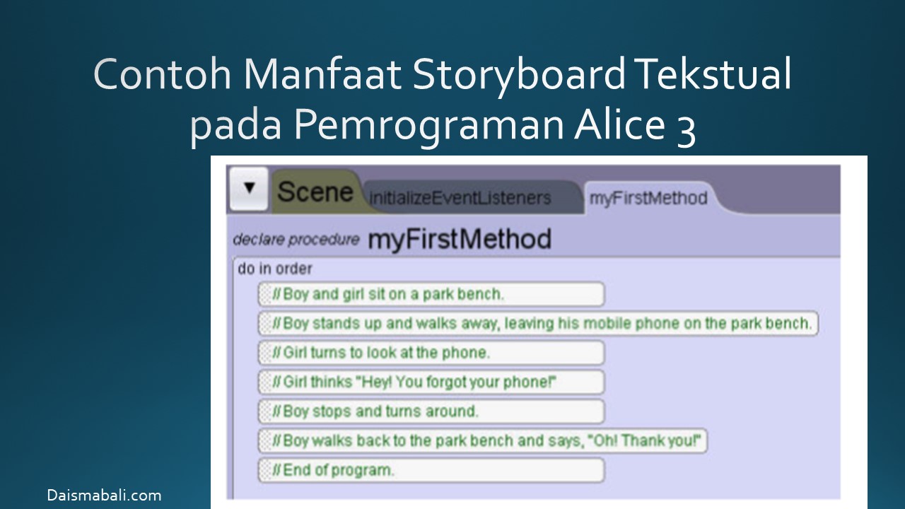 - Contoh Manfaat Storyboard Tekstual pada Pemrograman Alice 3