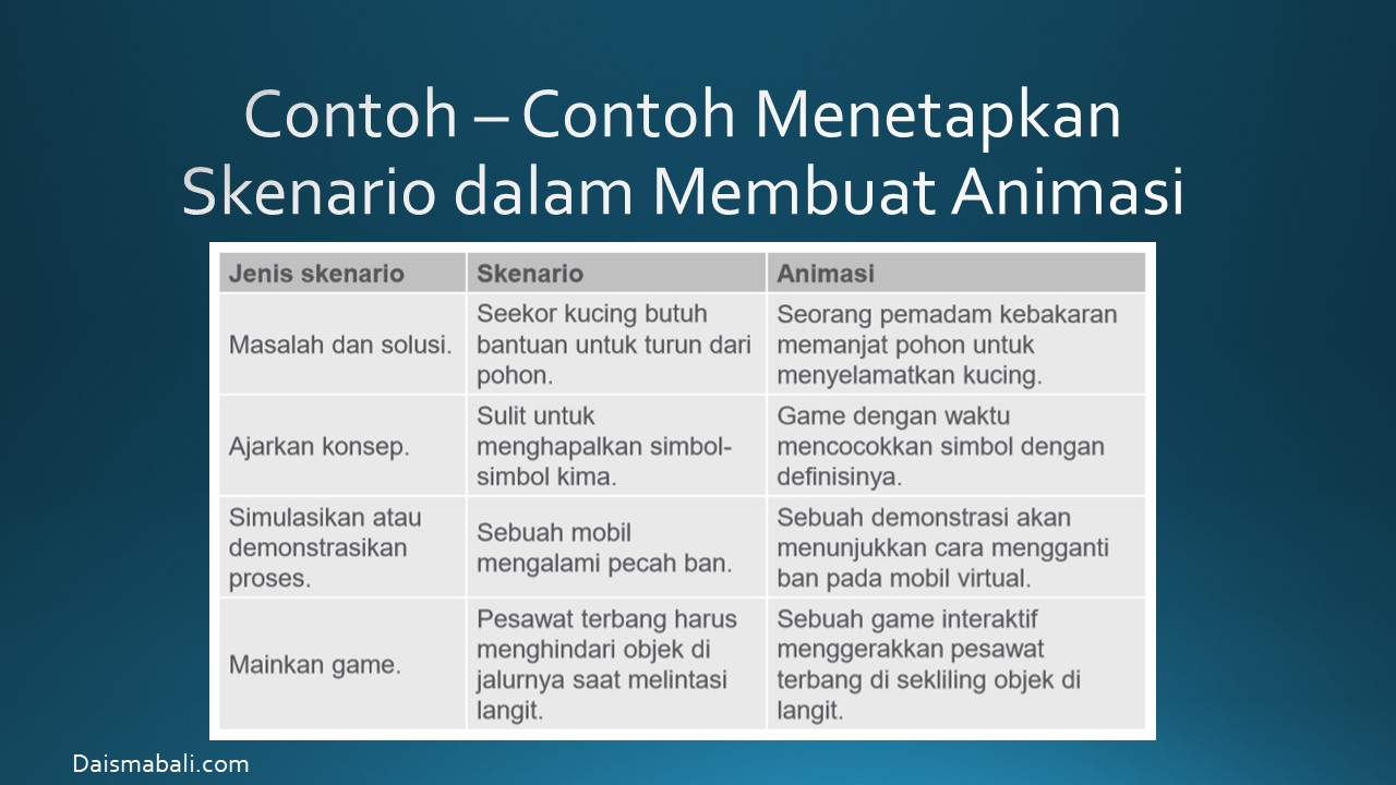 - Contoh – Contoh Menetapkan Skenario dalam Membuat Animasi
