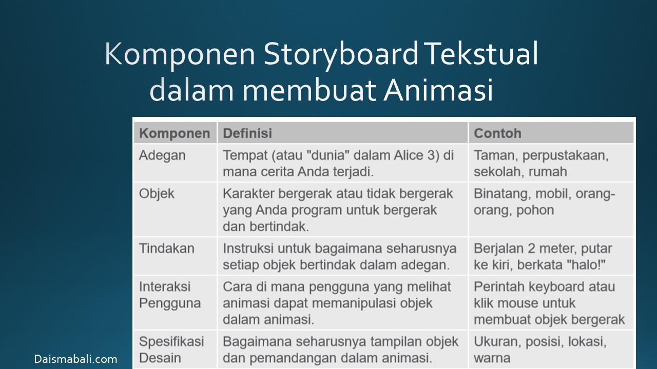 - Komponen Storyboard Tekstual dalam membuat Animasi