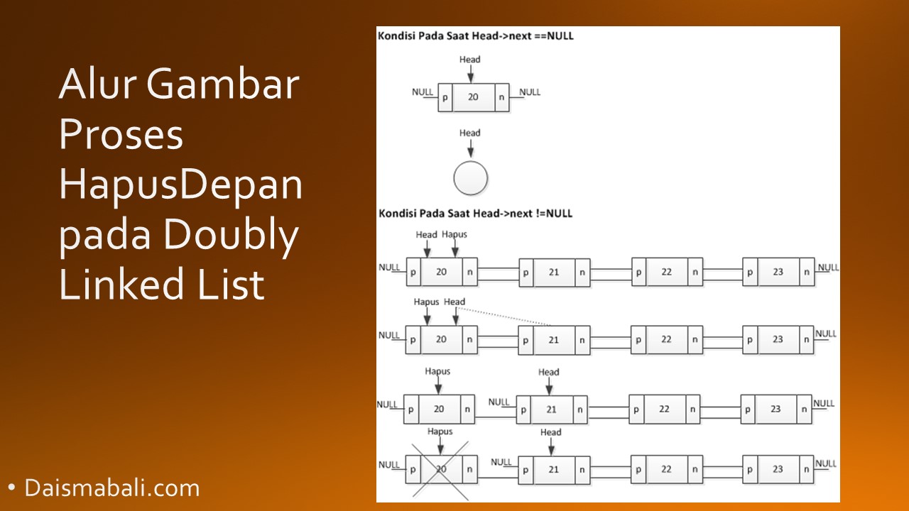 Jika Diilustrasikan dalam Alur Gambar untuk HapusDepan pada doubly Linked List seperti berikut :