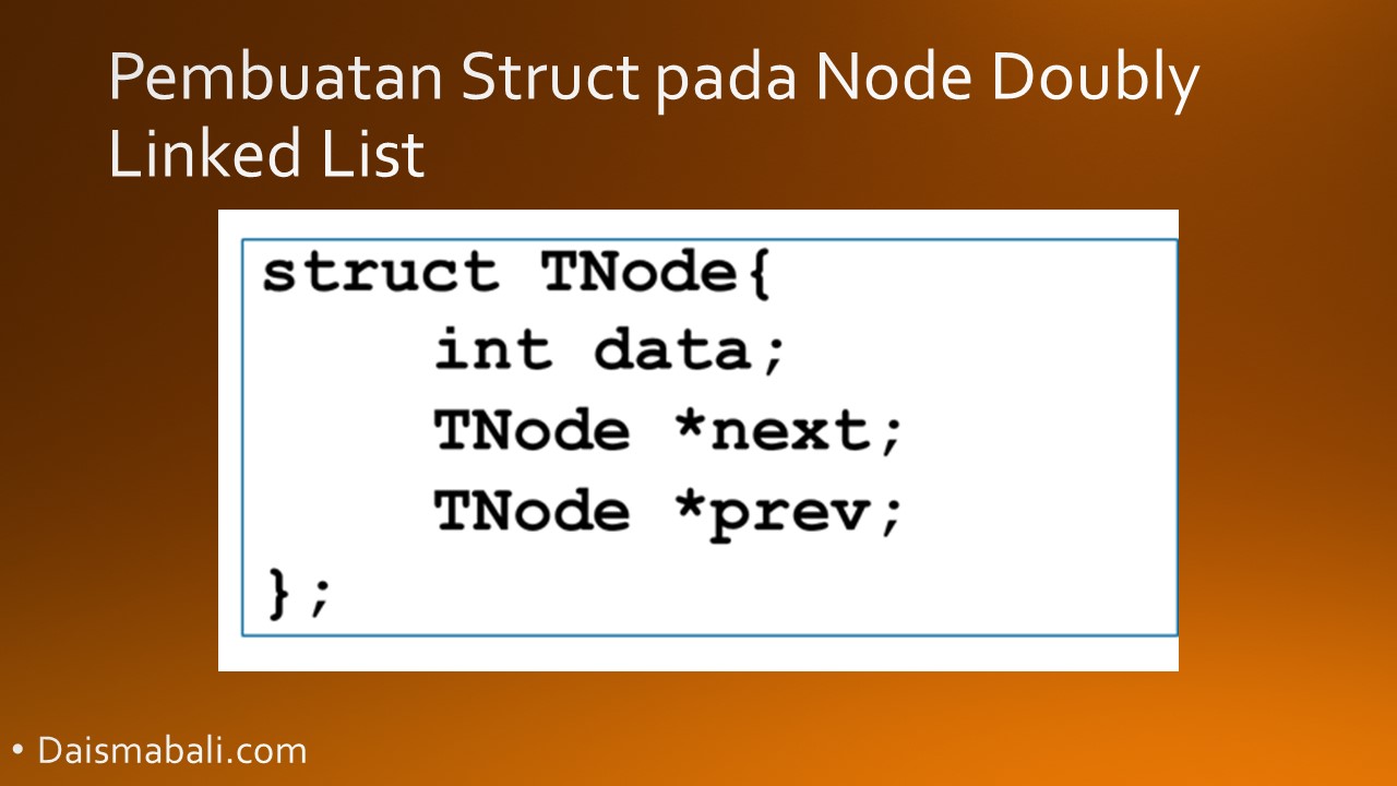 Dalam Pembuatan Doubly Linked List Tentu diawali dengan pembuatan struct untuk Node yang berfungsi untuk menentukan bentuk sebuah node seperti tampilan berikut :
