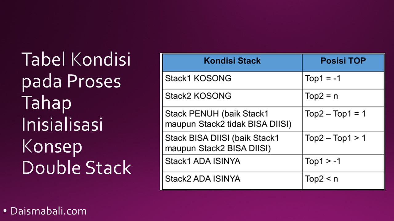 Dalam Proses Tersebut maka Secara Kondisi juga berbeda dengan Single Stack. Kondisi Double Stack ada penambahan. Dan berikut Penambahakan Kondisi pada Double Stack seperti tabel Berikut :