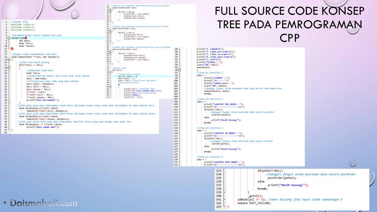 Dan berikut Full Source Code Konsep Tree dalam Struktur Data di Bahasa Pemrograman Bahasa C++ :