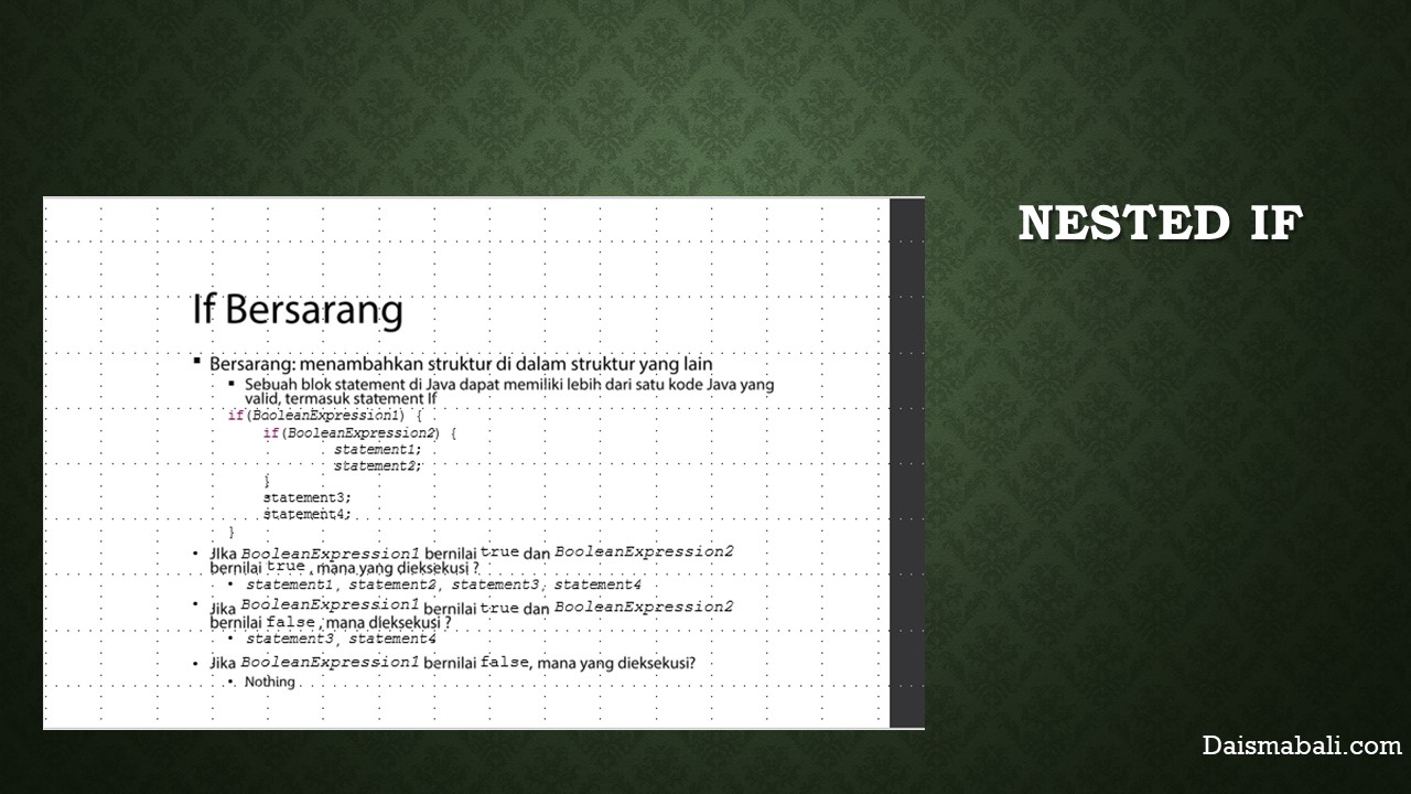 Setelah memahami Pernyataan If. Apabila pembuatan Statement If ada pada Blok Code Statement If maka bisa diistilahkan sebagai Nested IF ( If Bersarang ).